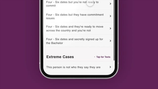 To help make break-ups easier for all involved, we created Hinge’s new in-app “Dump Button.” Users can select a pre-written break-up text or we’ll just send one for you.