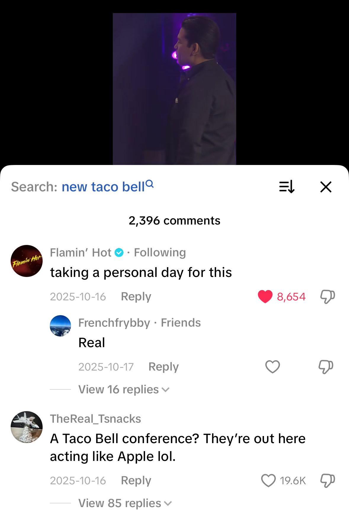 Achieved top comment when Taco Bell announced a new Flamin’ Hot burrito on TikTok.